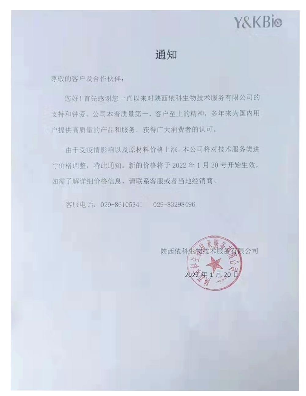 首页 > 新闻资讯 > 甘肃依科生物技术有限公司|调价通知