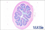 实验介绍 阿利辛蓝(Alcian)又称爱先蓝或阿尔辛蓝等,是一种类铜钛花青共轭染料,这种阳离子染料与酸性基团结合,即阿尔辛蓝与组织内含有的阴离子基团如羧基和硫酸根形成不溶性复合物。阿利辛蓝由中央含铜的酞菁环与四个异硫脲基通过硫醚键相连而成。该异硫脲基呈中度碱性,使阿利辛蓝带阳离子。利用染液的不同pH值可区分粘液物质的类属,pH 值为2.5时组织内的羧基电离,带有一个负电荷,与阿利辛蓝中的阳离子形成盐键,是带有羧基的组织(如蛋白多糖/透明质酸以及上皮酸性黏蛋白)染色。pH值为1.0时,组织内的硫酸根电离,带有一个负电荷,与阿利辛蓝中的阳离子形成盐键,使带有硫酸根的组织(如硫酸黏液物质)染色。中性黏蛋白(如胃黏膜和Brunner腺体部位的中性黏蛋白)不能与阿利辛蓝反应。