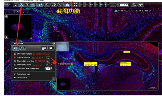 6.截图功能(选择好要截取的位置,截图,保存,图片中要带的一些标签可以自己选择比如比例尺、图片中做的标记、实况图、片子的片头,位置也可以自行调节)