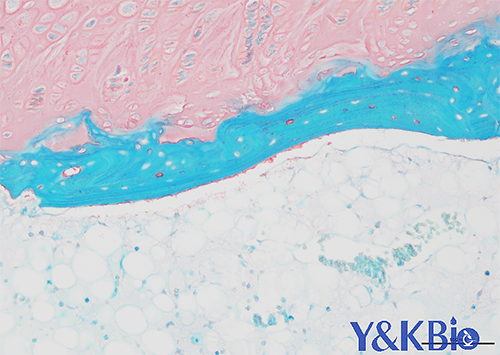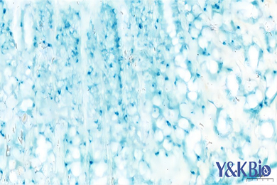 2、番红染色:切片入1%番红染液染色1-2h。自来水稍洗,洗去多余染料。