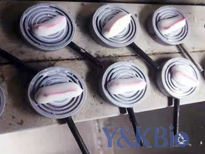 5、将托盘放入液氮中,浸没组织,持续3-5s后捞出,如此重复3-4次左右,待脑组织从半透明变为白色即可(组织浸没与液氮的时间不能过长,避免组织碎裂);