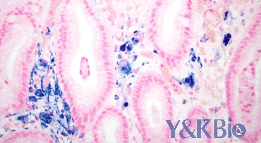 陕西依科生物技术服务有限公司一、普鲁士蓝详情介绍:含铁血黄素(Hemosiderin)是一种血红蛋白源性色素,为金黄色或棕黄色颗粒,因其含铁、金黄色,故称为含铁血黄素。当红细胞被巨噬细胞吞噬后,在溶酶体酶的作用下,血红蛋白被分解为不含铁的橙色血质和含铁的含铁血黄素。Perls 普鲁士蓝反应(Prussian blue reaction)又称为含铁血黄素染色,即经过亚铁和稀酸处理后可以产生蓝色,常见于吞噬细胞内会间质内,主要显示三价铁盐。Perls 普鲁士蓝是非常经典的组织化学反应,是显示组织内三价铁的一种敏感、传统优良的方法,其染色原理为:亚铁qing hua jia溶液使三价铁离子从蛋白质中被稀盐酸分离出来,三价铁与亚铁反应,生成一种不溶解的蓝色化合物即三价铁的亚铁物普鲁士蓝,所以该反应被称为甘肃普鲁士蓝染色反应。三价铁的是一种很稳定的化合物,在反应后可用红色染色剂进行复染,如核固红、伊红、中性红等。