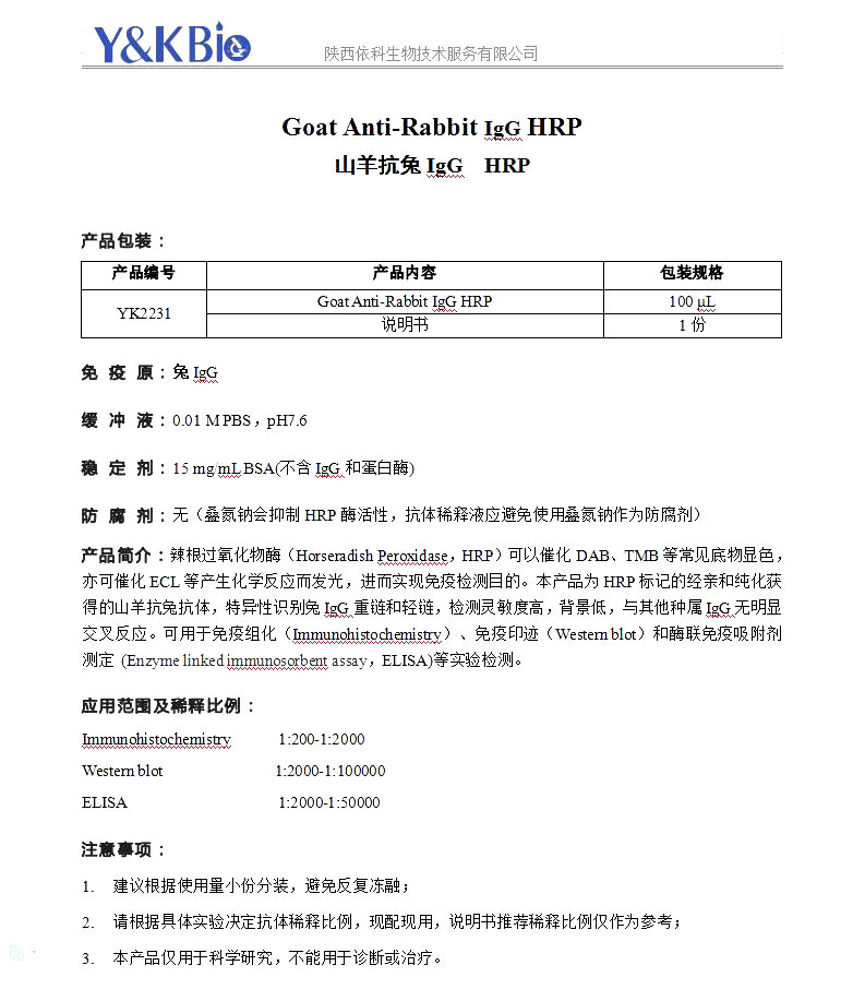 甘肃Goat Anti-Rabbit IgG HRP 山羊抗兔IgG (H+L),HRP