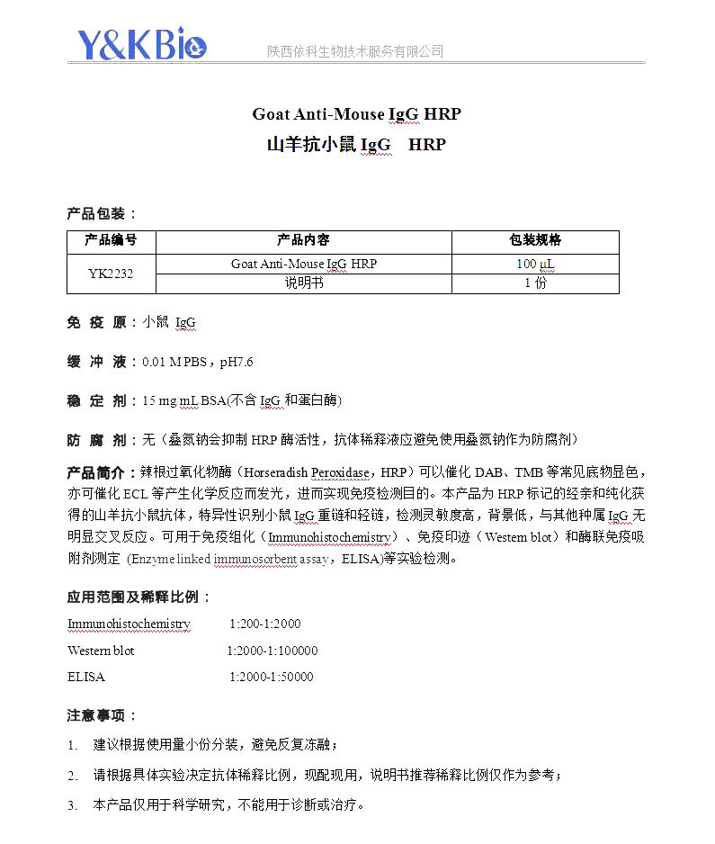 甘肃Goat Anti-Mouse IgG HRP 山羊抗小鼠IgG (H+L) HRP