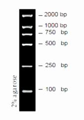 DL-2000 DNA Maker由6条DNA片段组成, 分别为2000 bp、 1000 bp、750 bp、500 bp、250 bp和 100 bp。本产品已含有 IxLoading Buffer ,可取5ul直接用于电泳分析。该产品适用于琼脂糖凝胶电泳中的DNA条带分析。